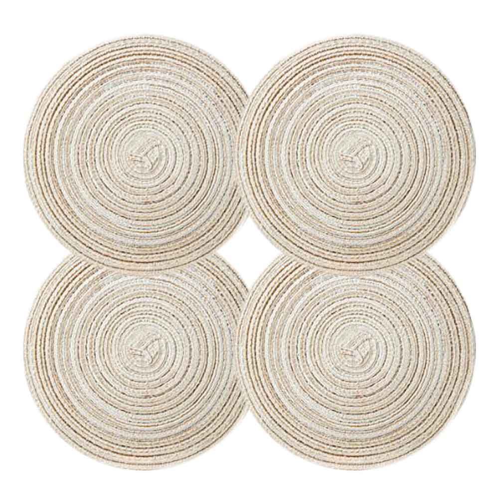 Home > 4 Pcs Coffee Time Round Braided Woven Placemats Home Decor Place Mats Kitchen Table Mats Woven Placemats 7 inch, Beige