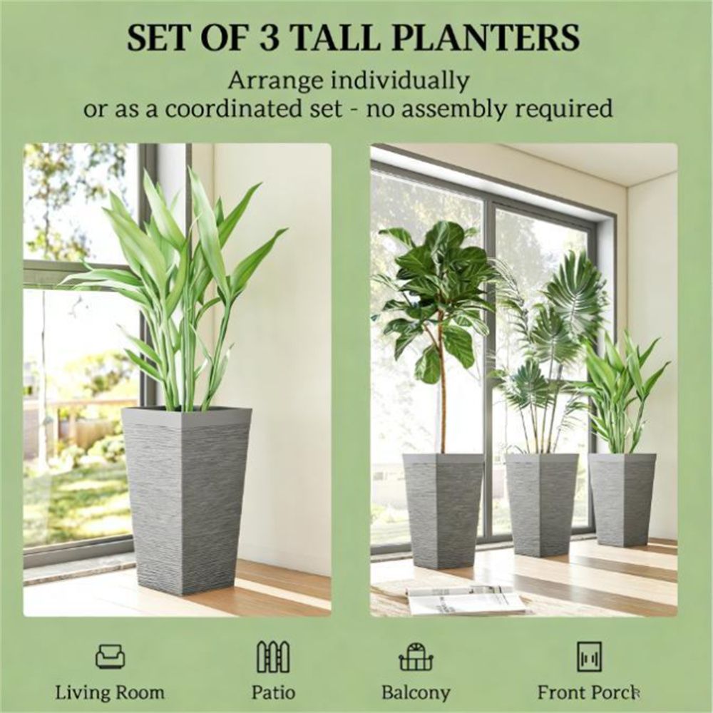 - Three garden pots allow for endless creative landscaping layout options