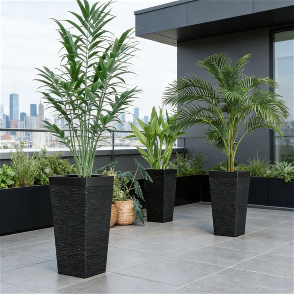 Home > A set of 3 outdoor flower pots, conical flower pots, space saving, black