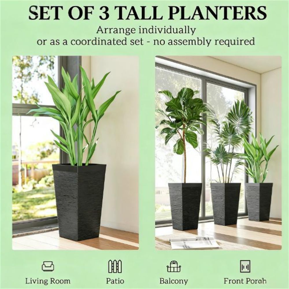 A set of 3 outdoor flower pots, conical flower pots, space saving, black A set of 3 outdoor flower pots, conical flower pots, space saving, black A set of 3 outdoor flower pots, conical flower pots, space saving, black