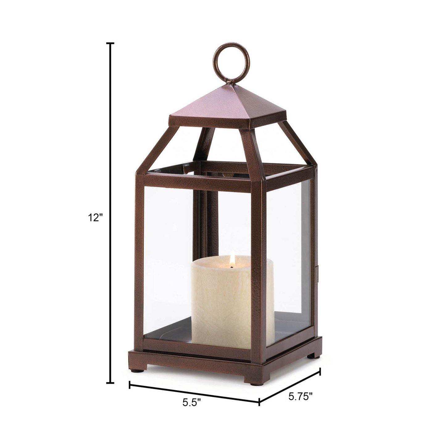 • The lantern weighs 1.9 lbs. and measures 5.5 inches by 5.75 inches by 12 inches.