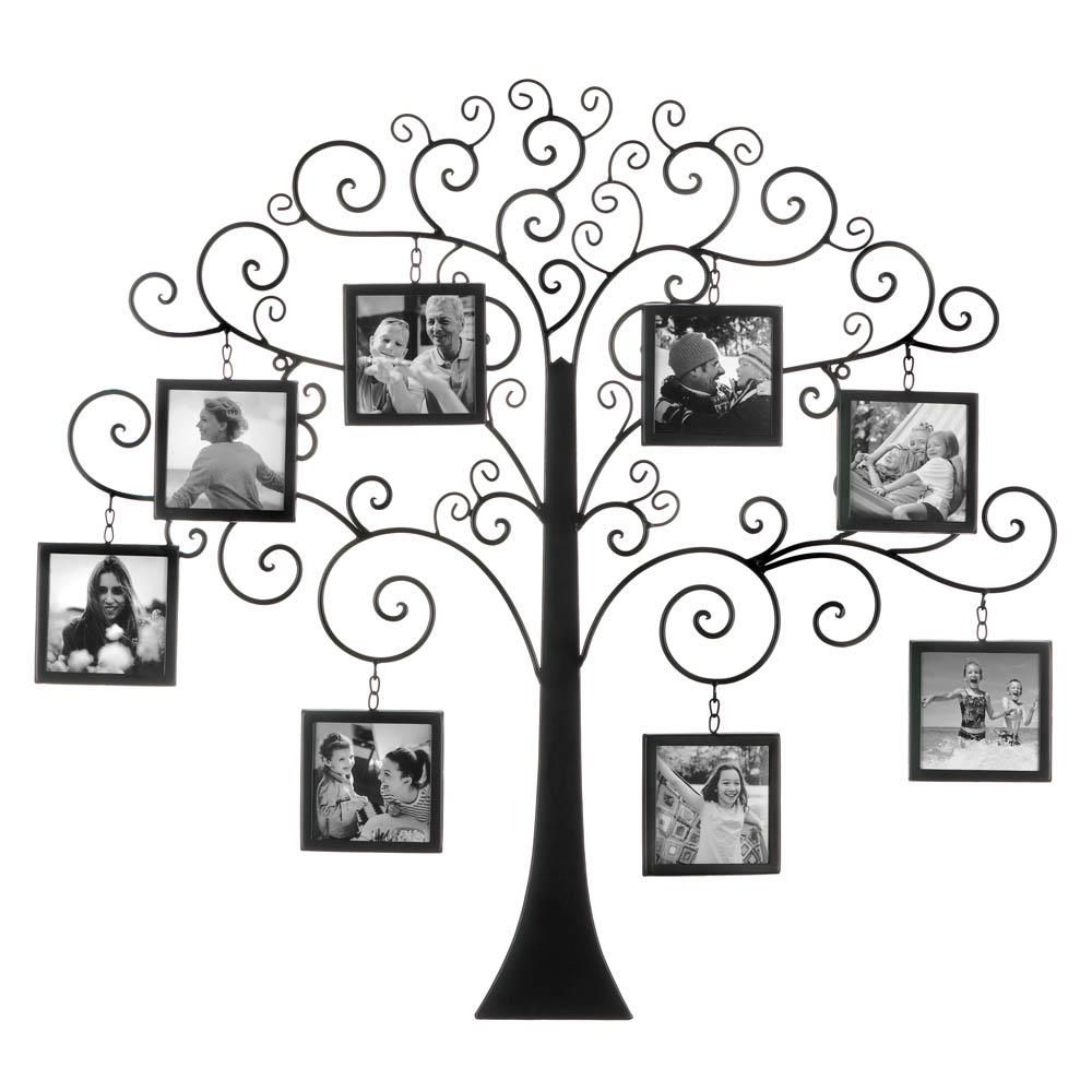 Proudly display your family's history with this beautiful family tree. This gorgeous wall hanging features a design with scrolling branches of metal to hold frames with pictures of your loved ones. Ideal as an accent piece alongside almost any style decor, from traditional to eclectic. Weight 5 pounds. 31" x 0.5" x 29". Iron, Glass, MDF Wood. UPC Number: 849179040796.