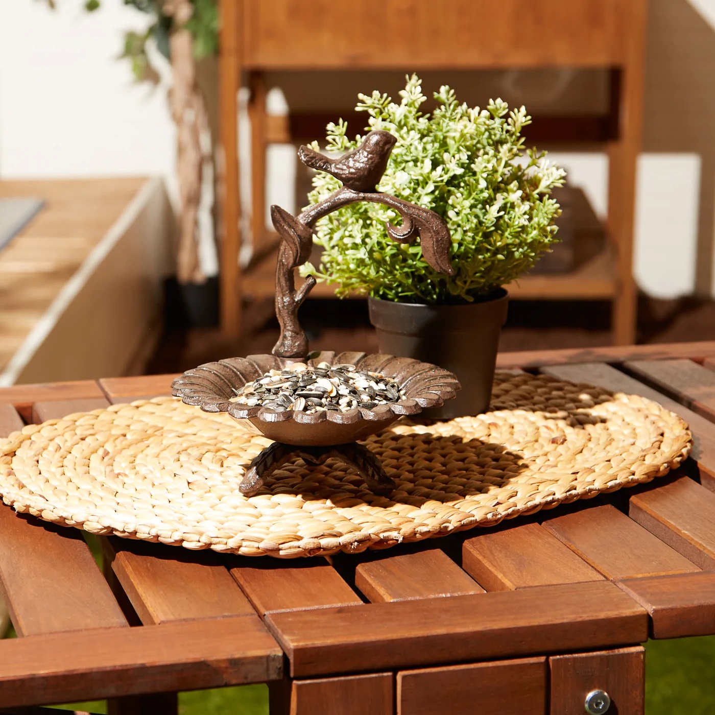 Bring birds to your garden and yard with this decorative bird feeder. This sweet piece of garden and yard decor brings style and function.