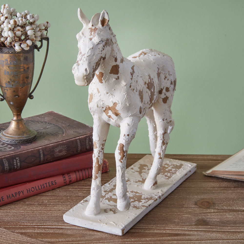 This majestic equine boasts elements from the architecture of the Roman Empire. Feature on a table or shelf for a quick, sophisticated touch in a room. This item is crafted from resin.