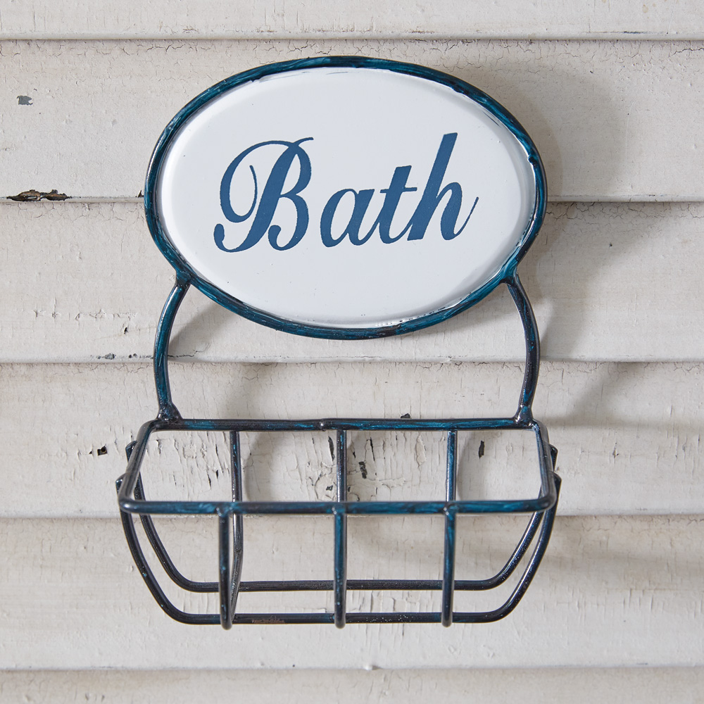 Soap holder is made of metal and mounts on a keyhole hanger. Measures 4¾''W x 3''D x 5½''H.