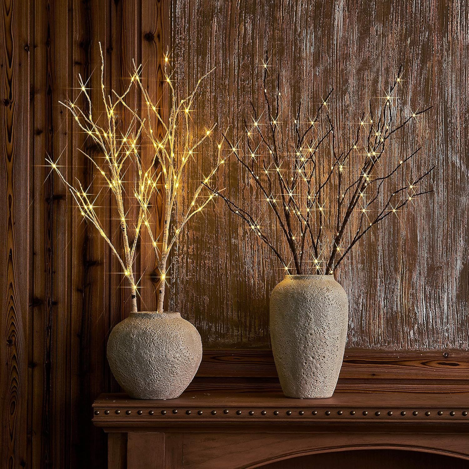 Lighted Brown Branches Battery Operated with Timer 30IN 100 LED Fairy Lights, Willow Branch Lights for Home Bedroom Fireplace Christmas Holiday Decoration Indoor Outdoor Use (Vase Excluded)