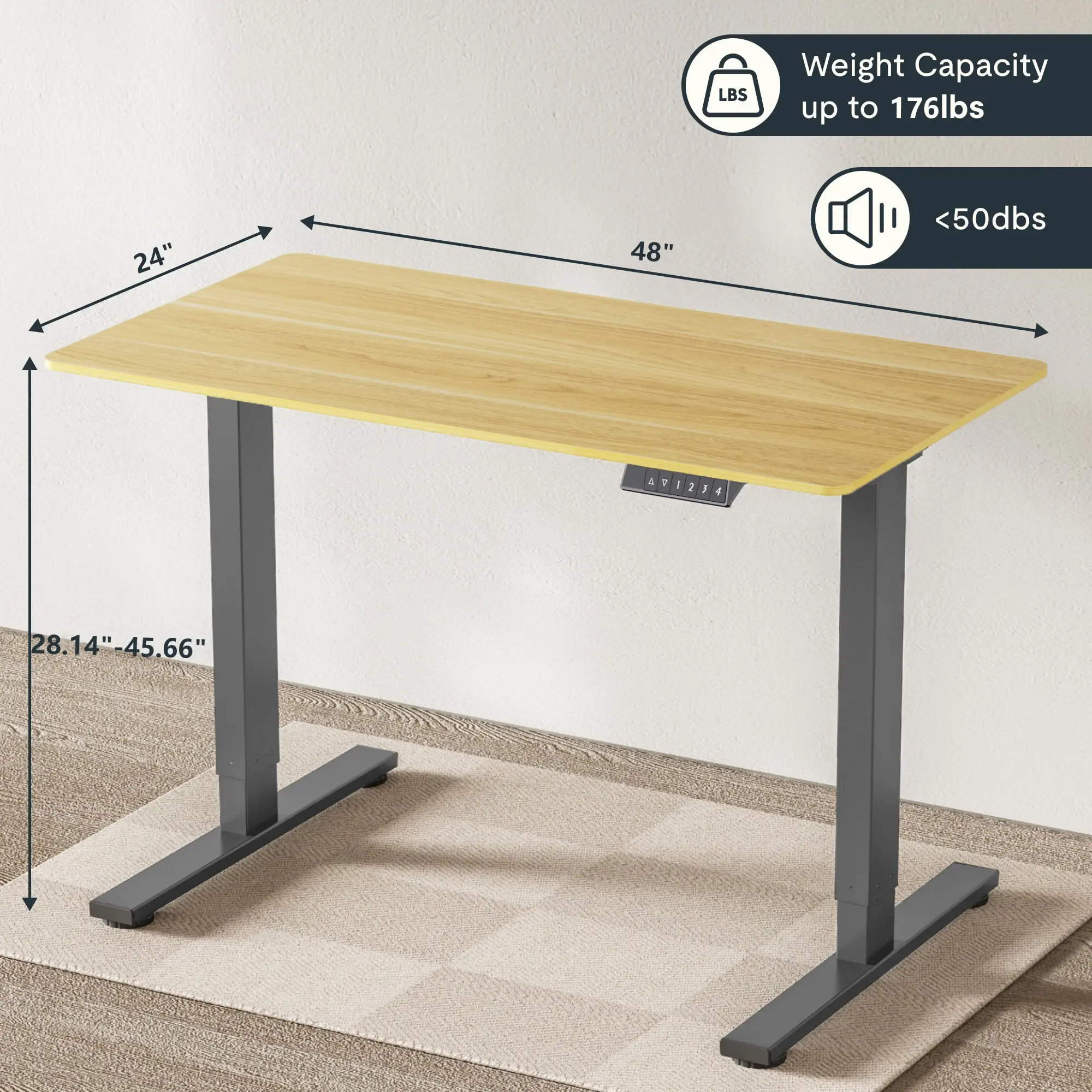 Product Name: Electric Standing Desk Adjustable Height Desk Home Office Computer Workstation Sit Stand up Desk, 48 x 24 inches (grey frame + maple top)